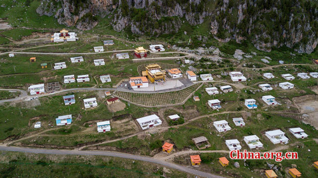 从空中俯瞰甘堡藏寨全景。[中国网 孙韬 摄]